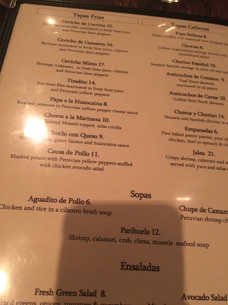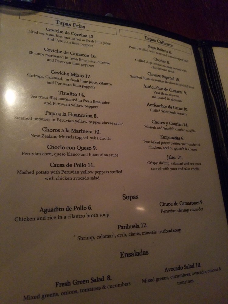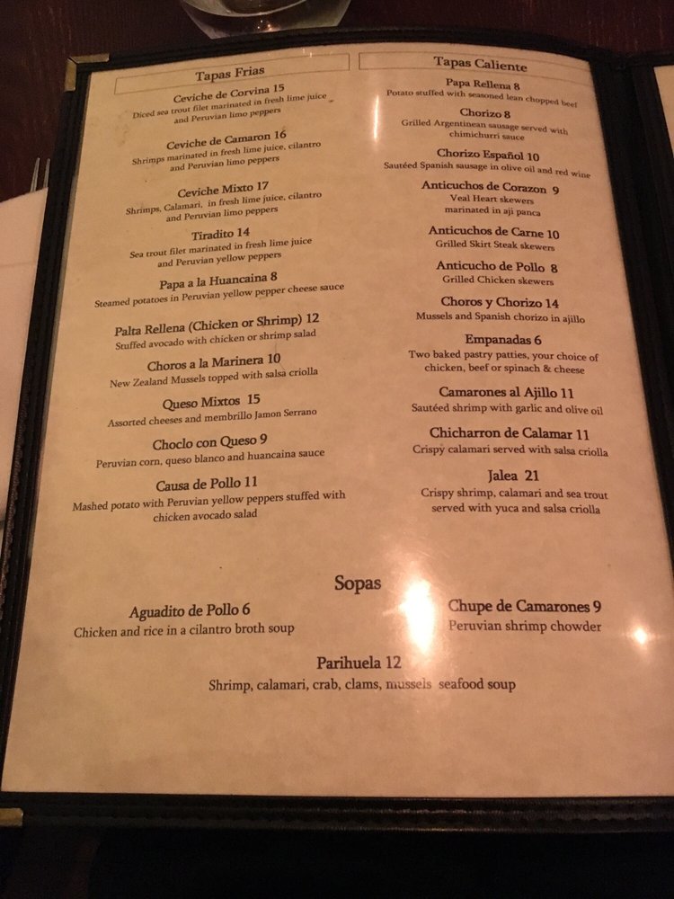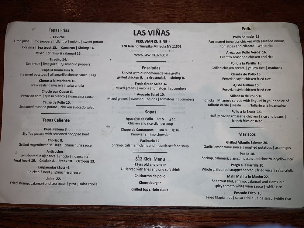 Las Vinas Peruvian Cuisine offers a diverse menu with a focus on Peruvian tapas. Located in Mineola, NY, this restaurant provides a cozy and classy atmosphere, perfect for an intimate dining experience. Their extensive menu includes traditional Peruvian dishes like Chupe De Camarones and Ceviche Mixto, showcasing the bold flavors of Peruvian cuisine.